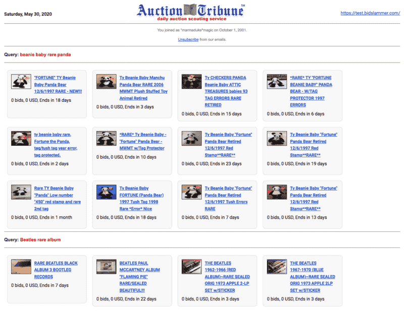 Наша служба оповещений о поиске превосходит eBay, поскольку мы группируем поисковые запросы в одно электронное письмо.